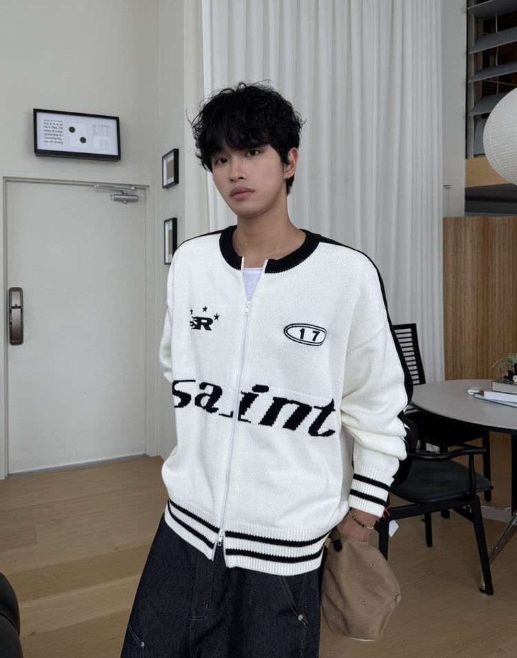 運動風印花拉鍊針織冷衫
